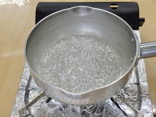 砂糖とお水を混ぜて鍋でぐつぐつ煮立てると……