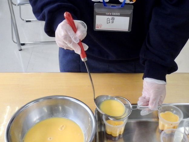 cafe OASISでプリンを作るのは私自身も初挑戦。ドキドキしながらのチャレンジでした。